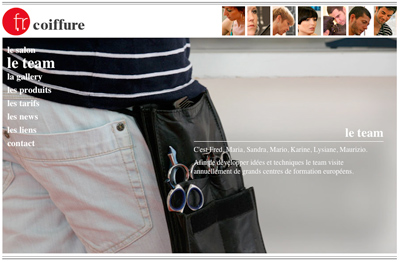 / Client : FR coiffure (salon de coiffure) / Mandat : Site internet - Prise de visuels pour illustrer le site - Player Flash pour musique d'ambiance